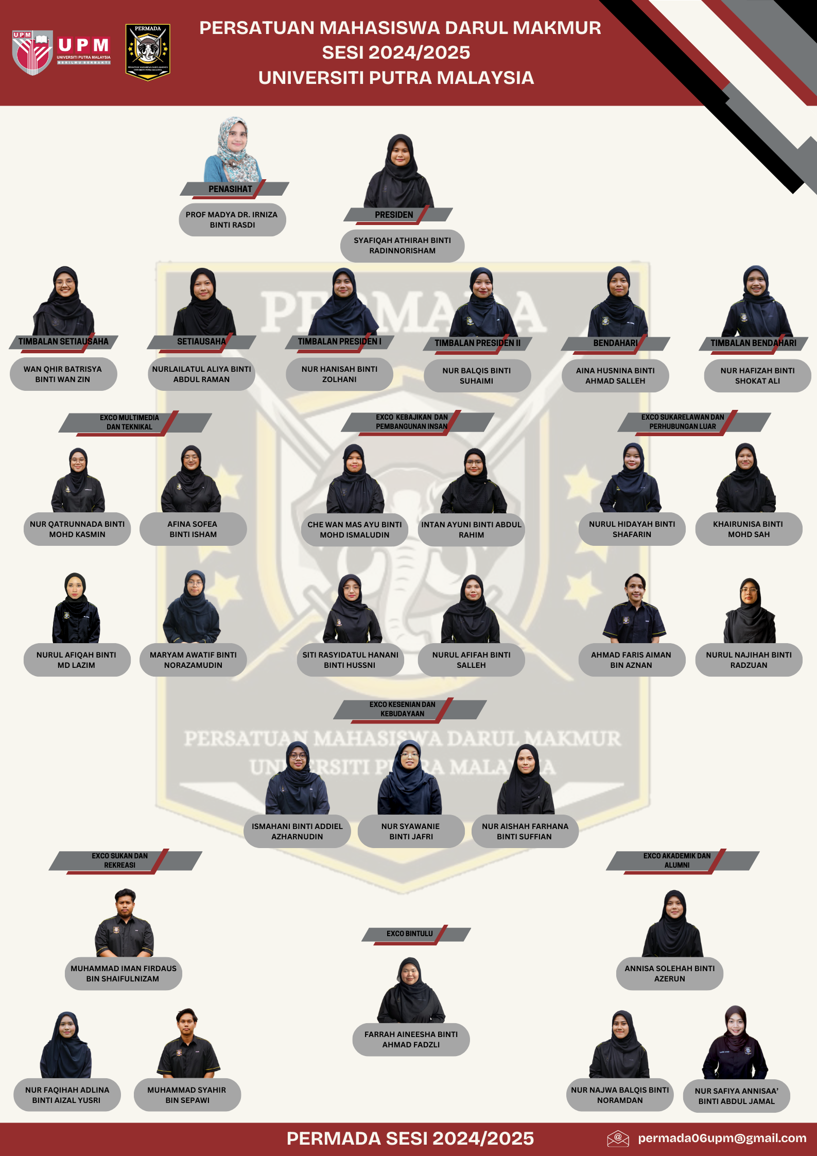 The name of this organization is the Perkasa Pahang Welfare Association (PERMADA), which brings together students from Pahang who are studying at Universiti Putra Malaysia (UPM) and are either born in Pahang (with the state code 06 on their identity cards) or have lived in Pahang for more than 10 years (based on discretion). It also includes students whose parents are originally from Pahang. This association was established to prioritize and safeguard the welfare of students from Pahang while they are pursuing their studies at UPM. PERMADA is also under the auspices of the Pahang Student Association Council (MAMPAN) at the national level, which unites all students from Pahang across Malaysia, and is under the welfare of the Pahang Foundation. The activities carried out by PERMADA are based on three main focuses: Economics, Education, and Community. However, PERMADA prioritizes the welfare of Pahang students and works to unite them to serve the state of Pahang and UPM.